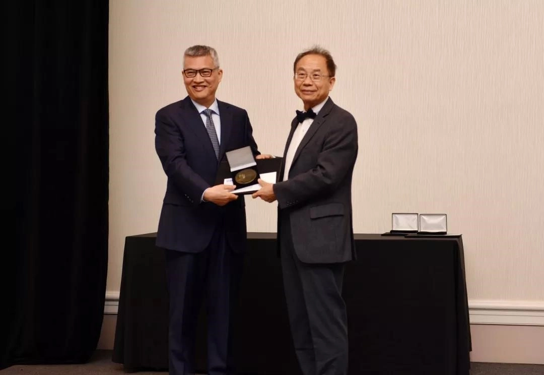 SID荣誉与奖项委员会主席吴诗聪教授(右)颁发给彭笑刚教授(左)特殊贡献奖