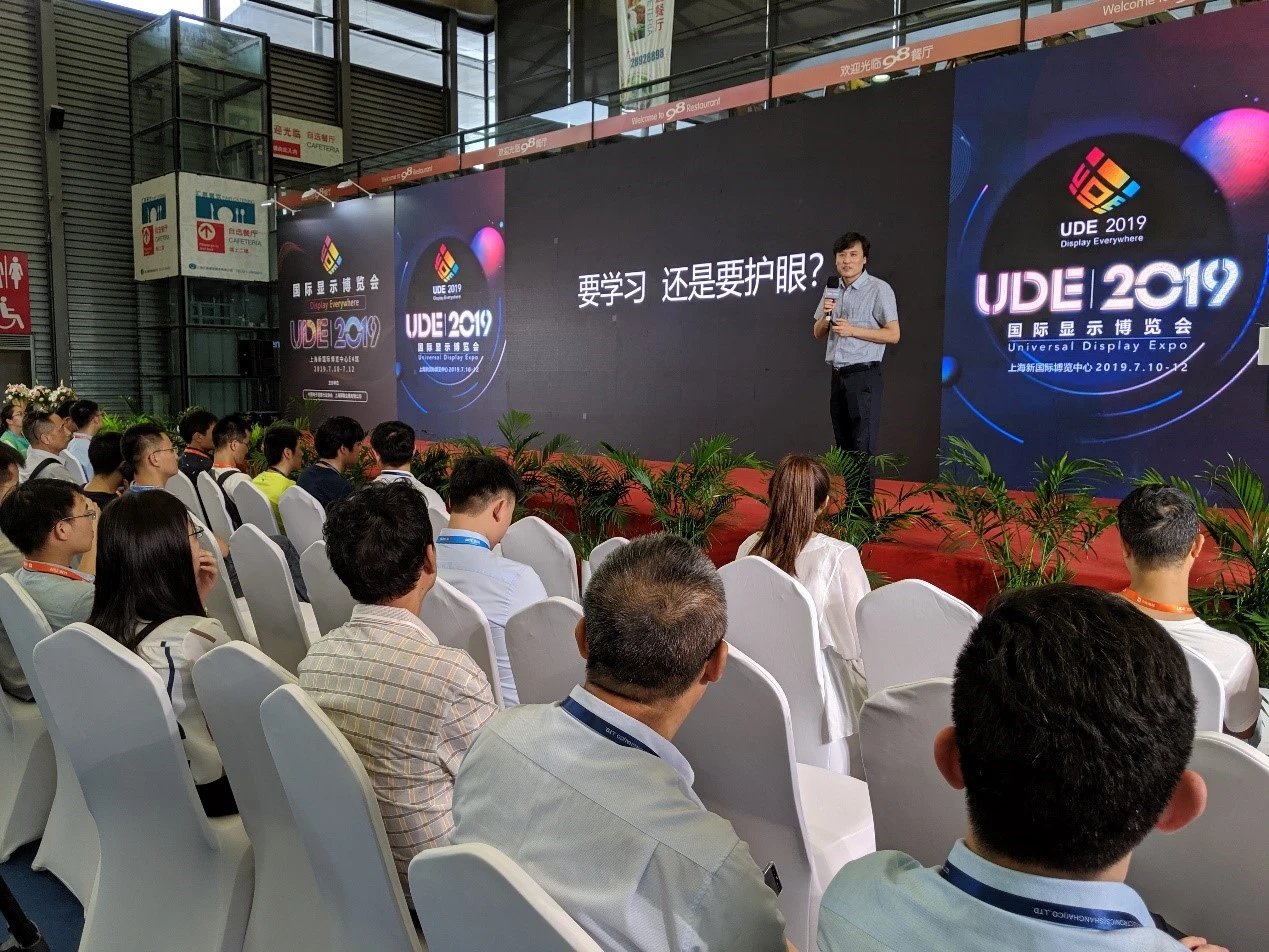7月10日,2019国际显示博览会在上海新国际博览中心E4馆拉开序幕。展会期间,显示事业部总经理赵飞博士代表纳晶科技发布了「量子点眼健康解决方案」。