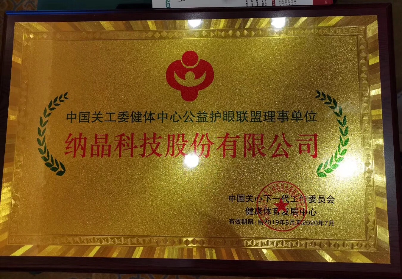 8月8日,中国关心下一代工作委员会健体中心(以下简称“中国关工委健体中心”)正式授牌纳晶科技股份有限公司成为中国关工委健体中心公益护眼联盟理事单位,并聘任纳晶科技副总经理、显示事业部总经理赵飞博士为理事。未来,双方将在近视防控领域展开深度合作。