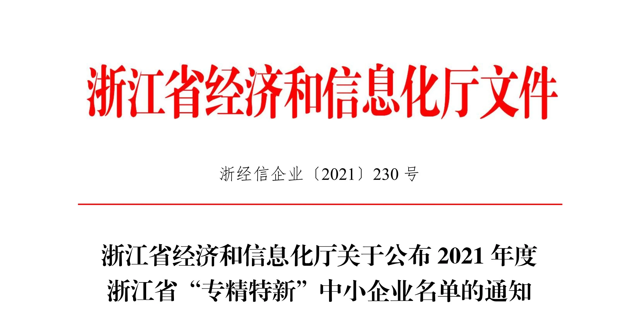 省级“专精特新”中小企业是优质企业梯度培育体系的重要组成部分,本次成功入选浙江省“专精特新”中小企业,是对公司自主创新能力和技术研发实力的认可和鼓励。公司将坚持“专精特新”发展之路,持续研发投入以不断提高公司的创新能力,保障企业持续、健康、高质量发展,努力成为引领我省经济转型升级的中坚力量。