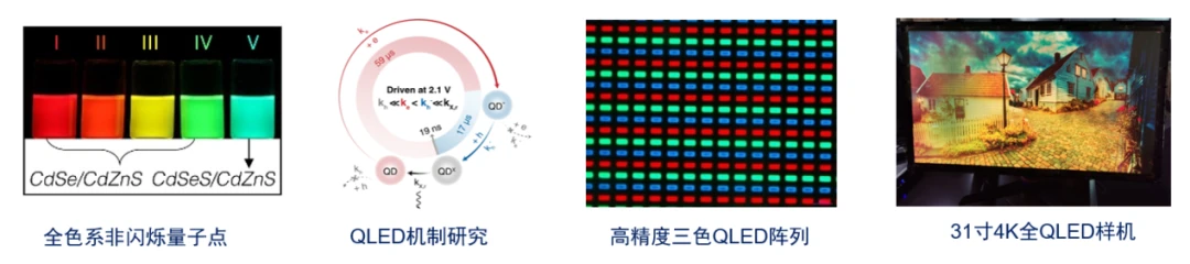 在基础科学层面解决了电致发光量子点的构效关系、量子点电致发光机制、高性能无镉可控合成、量子点发光上转换等难题;