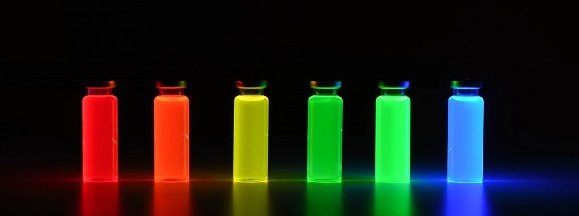 走进纳晶科技,一楼展厅里五颜六色的彩色溶液吸引了记者的目光。讲解人员介绍,这些发光的液体,就是半导体发光纳米晶材料,由于不同尺寸的量子点,可以在受到外来电、光等能量的激发后发出不同色彩的光,所以借由量子点材料作为显示屏背光材料,能让色彩更为丰富,也是人类已知最好的发光材料。