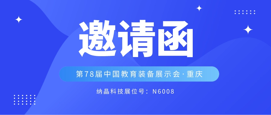 金秋十月,相约雾都。衷心感谢您长期以来对纳晶科技的支持与厚爱,我司将于2020年10月23-25日参加在重庆国际博览中心举行的「第78届中国教育装备展示会」。本次展会,我们将携「量子点健康显示解决方案」参展,现诚邀您莅临展位:N6008参观指导、交流合作。我们期待您的光临!