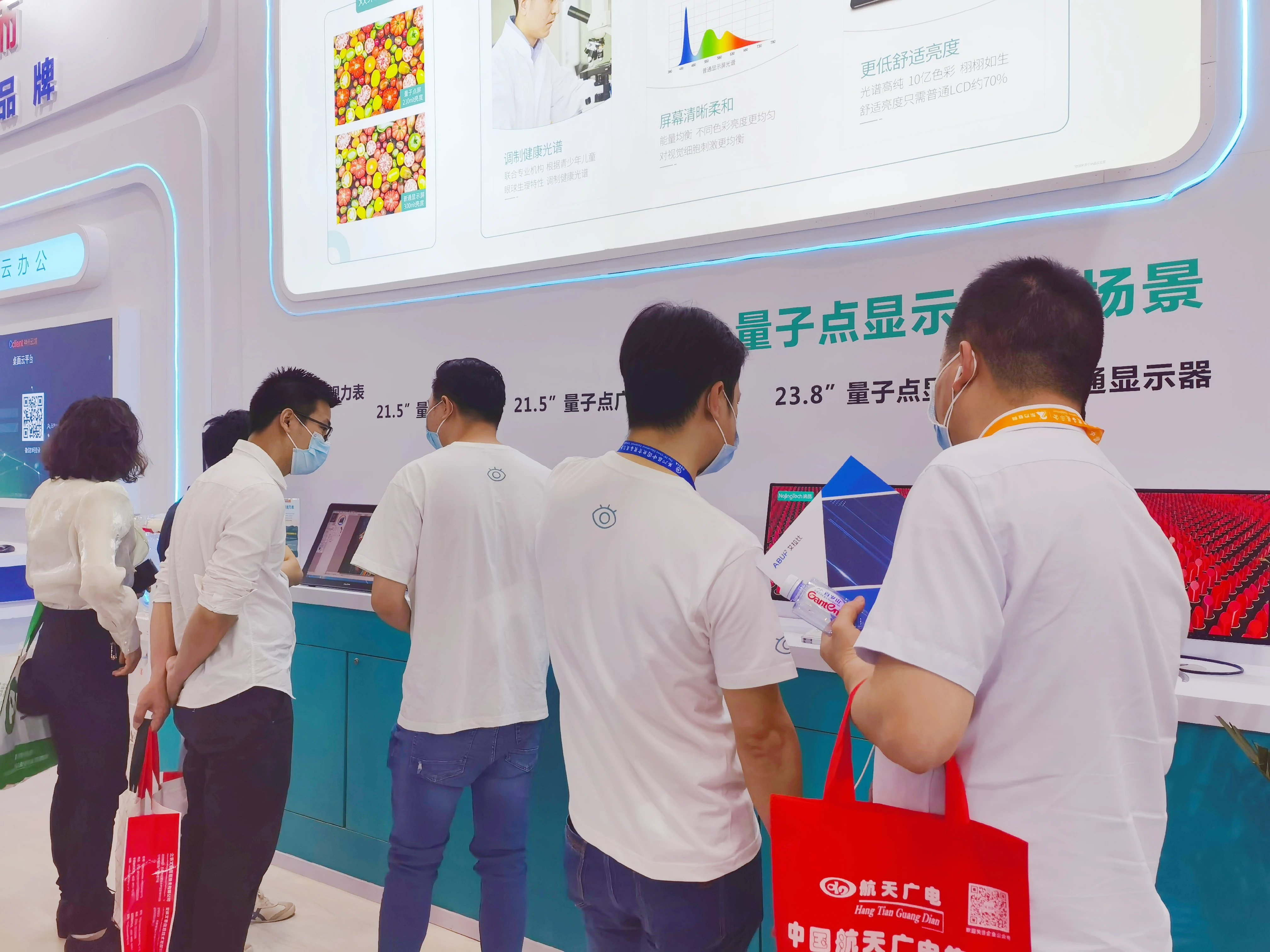 纳晶量子点舒眼屏的人眼舒适亮度只需普通显示屏的70%左右,便可达到高色彩还原的显示效果,画面清晰柔和,减少了屏幕对眼睛的伤害,视觉疲劳更低,经中国标准化研究院视觉健康与安全防护实验室检测,纳晶量子点显示屏VICO 1.97,视觉舒适度A级,优于市面普通显示屏。展会现场,清晰的对比展示受到了广大参观者的认可,气氛十分热烈。