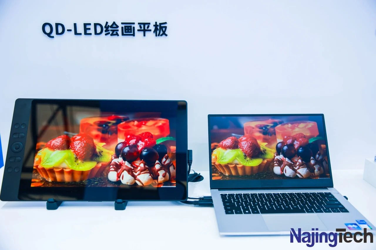 除了智能手机,纳晶带来了搭载3806/4014等不同规格量子点封装灯珠的显示产品,包括23.8”量子点芯片封装显示器、15.6”量子点芯片封装笔电模组和绘画平板。其中量子点笔电模组色域高达100% NTSC, DCI-P3及Adobe